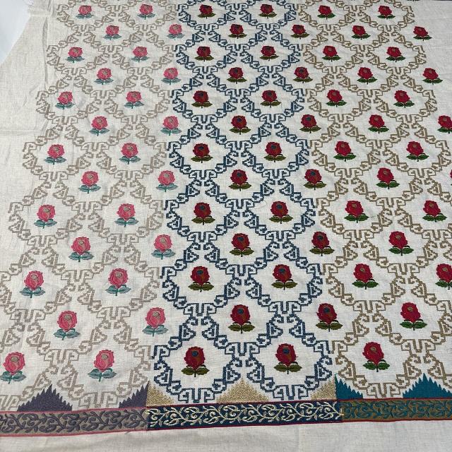 Linen Jacquard Designer Fabric Embroidered Florals Combed Yarn for Elegant Custom Apparel Designs Woven Style Use for Dresses