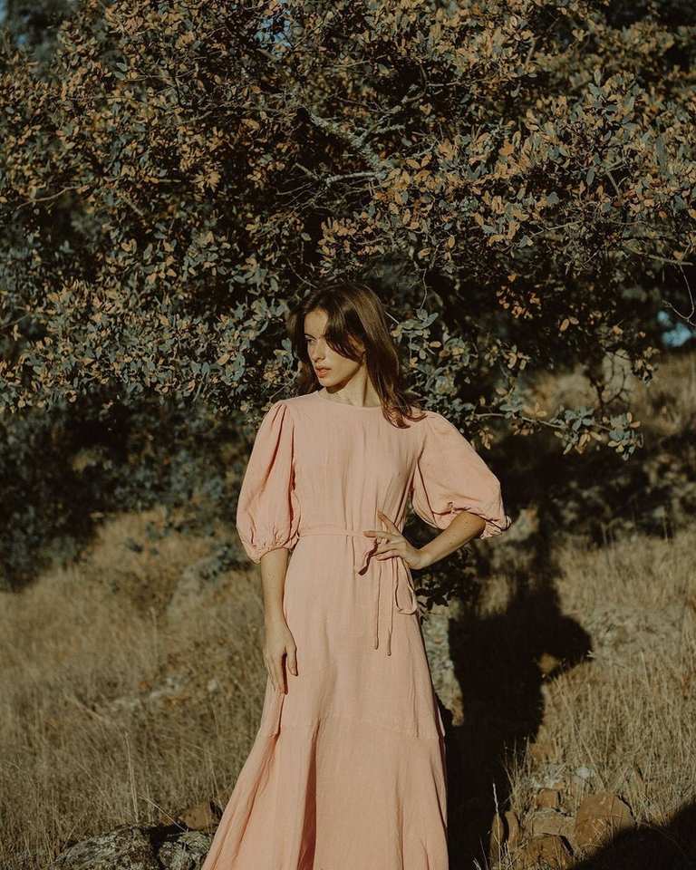 Linen Maxi Dress for Women Long Relaxed Fit Tunic with Big Sleeves Elegant and Comfortable Everyday Outfit