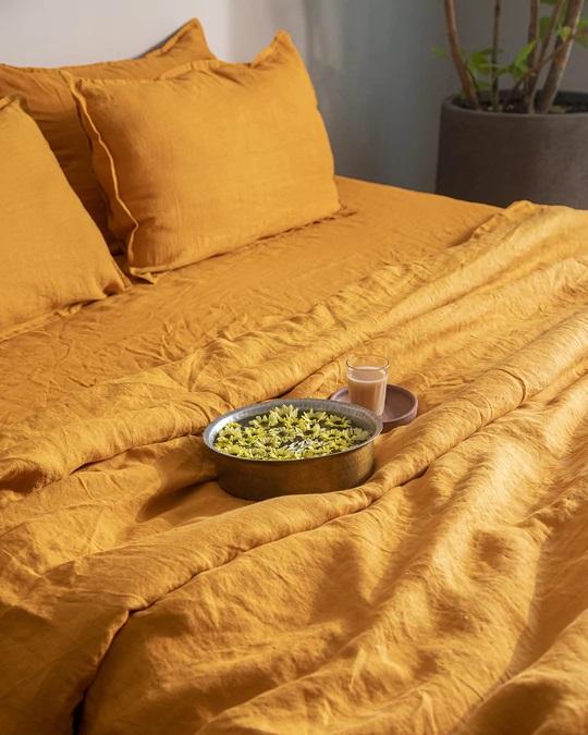 Linen Mustard 3-Piece Comforter Quilt Duvet Cover Set Coconut Buttons Ribbon Ties Soft Home Hotel Hospital Bedding Solid Design