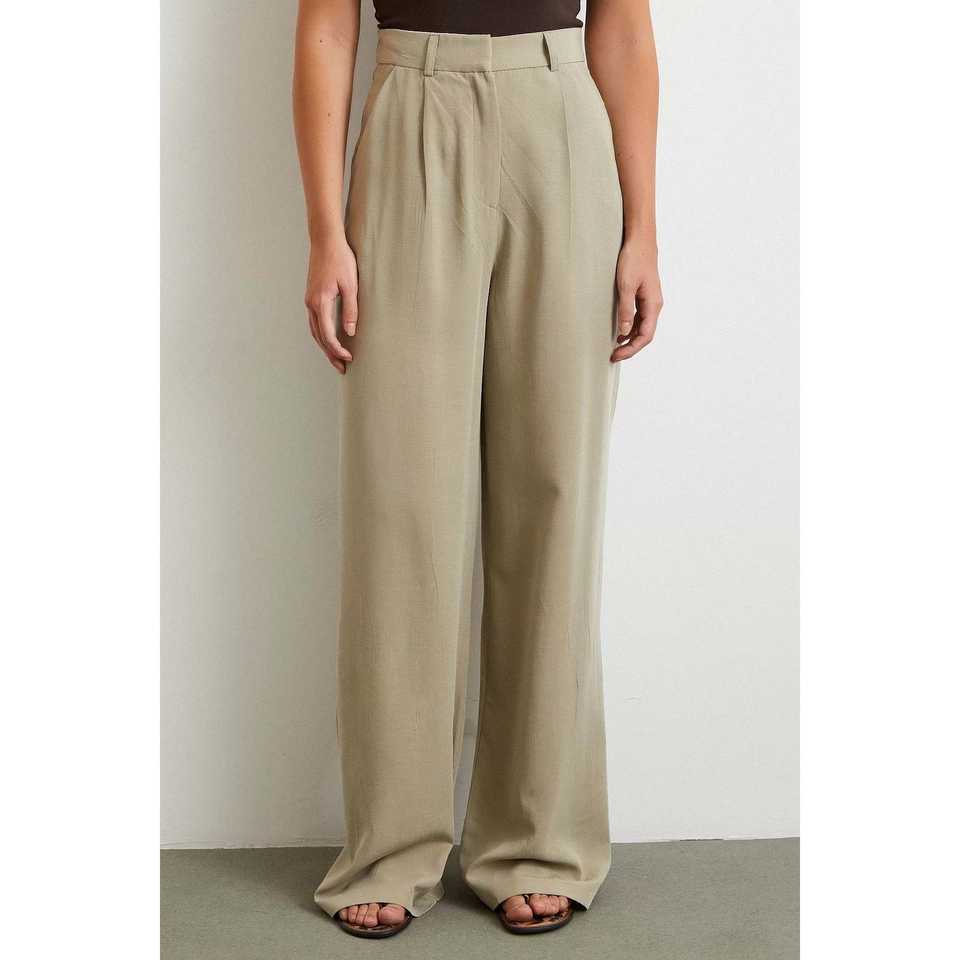 Linen Palazzo Trousers High Waist Wide Leg Gray Minimalist Breathable Women's Pants