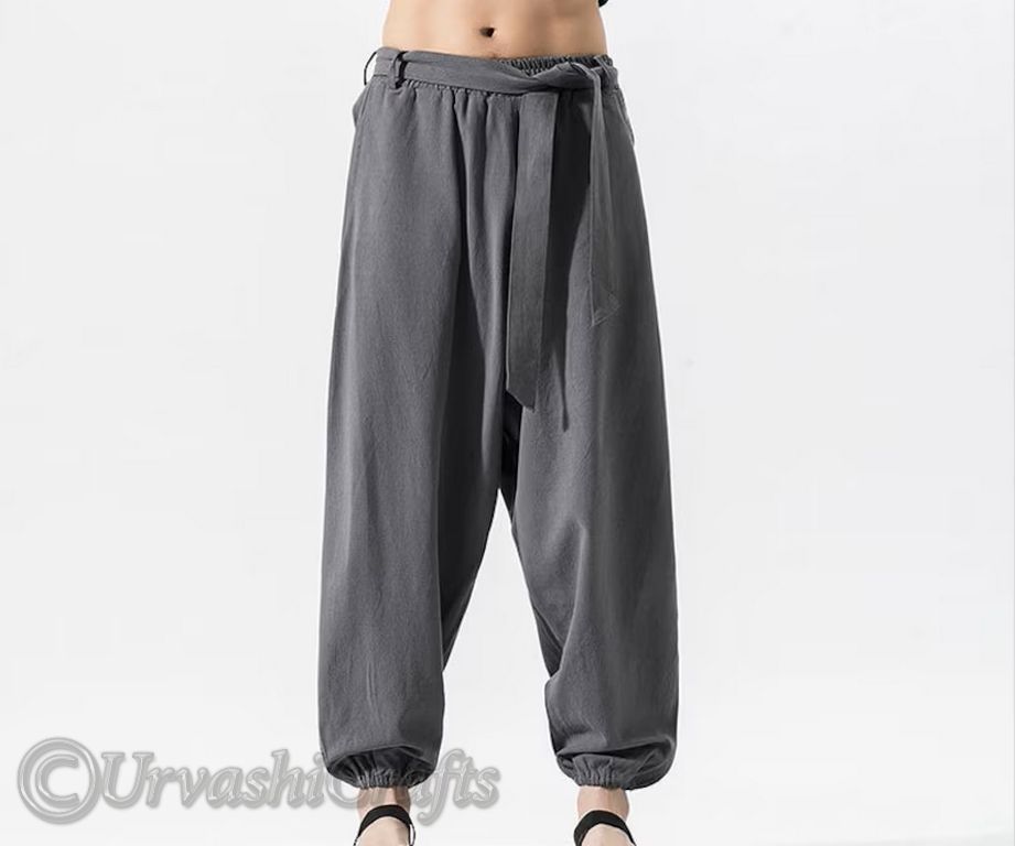 Linen Pants Man Summer Fashion Hip Hop Harem Pants Men Joggers Solid Color Drawstring Elastic Waist Baggy Drop Crotch Sweatpants