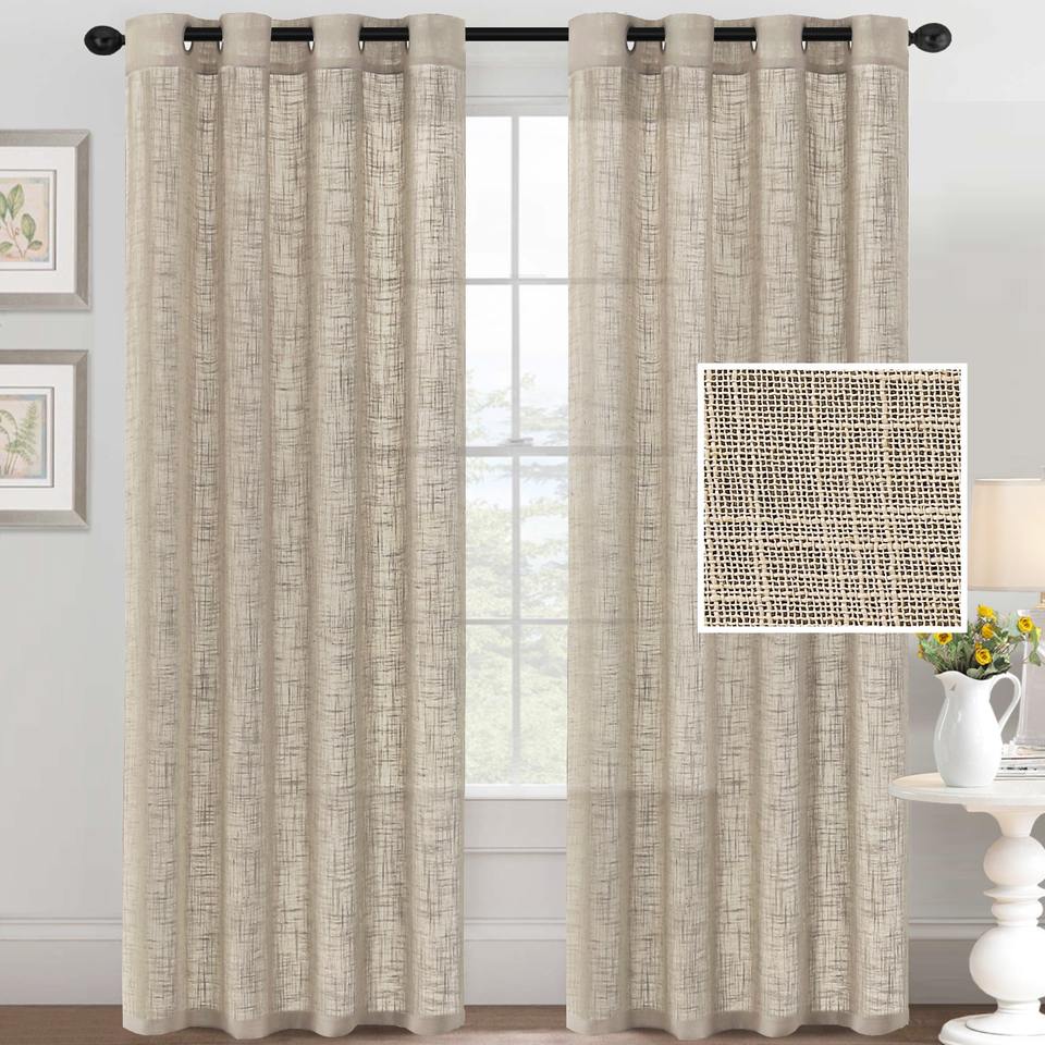 Linen Sheer Curtains Home Hotel Modern Woven Window Treatments Light Filtering Privacy Natural Grommet French Left/Right