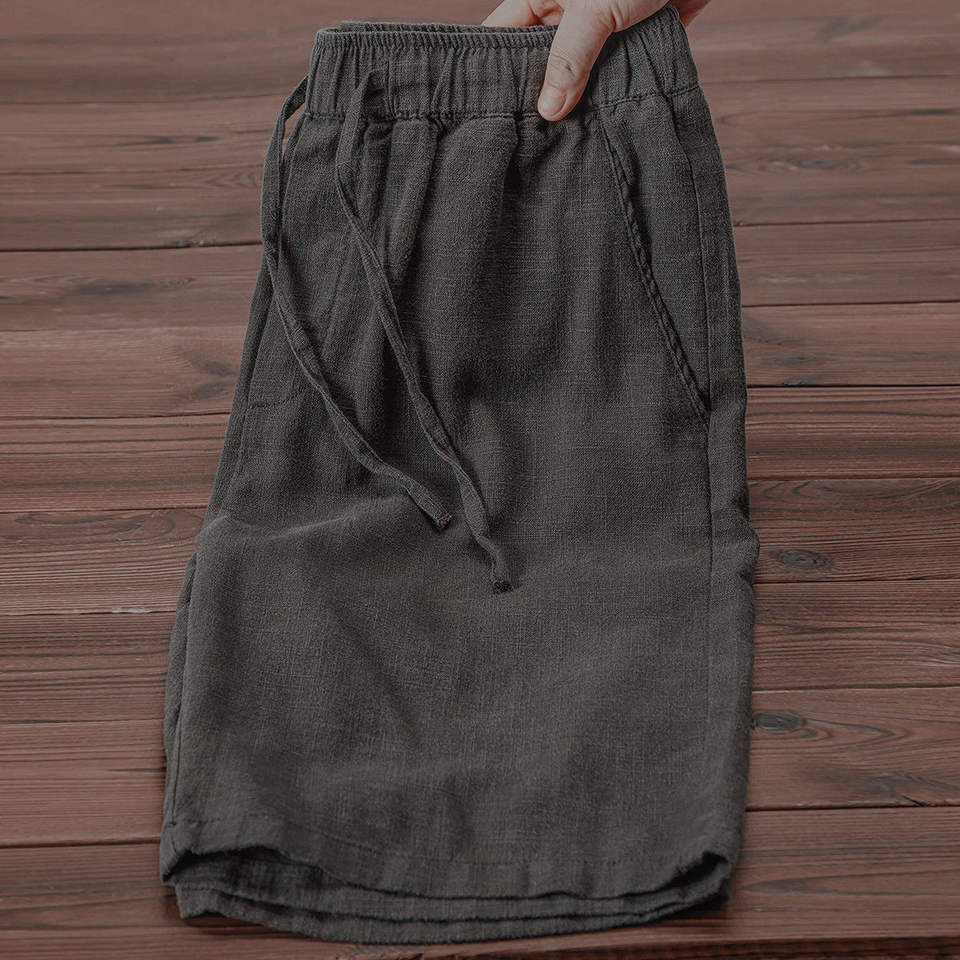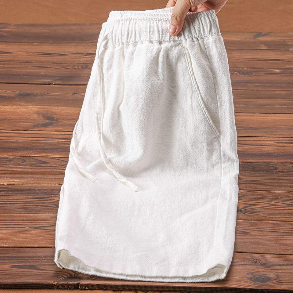 Linen Shorts Men Casual Knee-Length Pants Quick Dry Breathable Custom 5 Inch Inseam Design Pockets