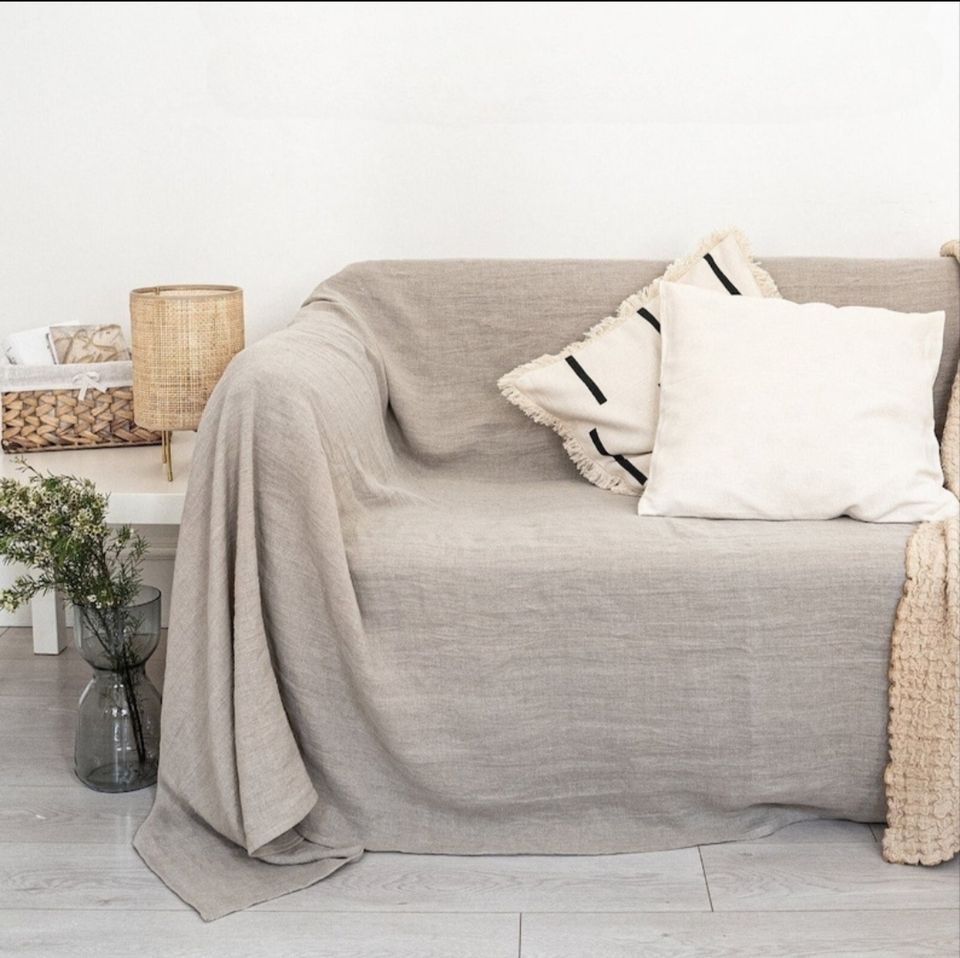Linen Sofa Slipcover Couch Throw Softened Linen Drop Cloth Couch Cover Eco Friendly Bedspread Custom Size Bed Cover