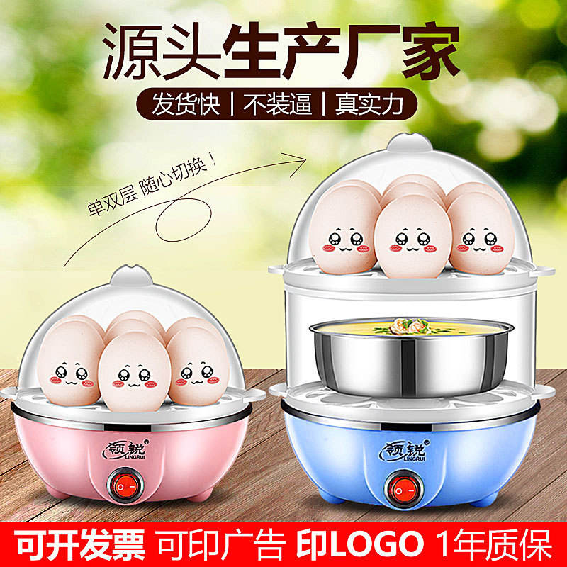 Lingrui Mini Egg Cooker Double Layer Stainless Steel Electric Boiled Eggs Steamed Custard Breakfast Machine Small Home Appliance