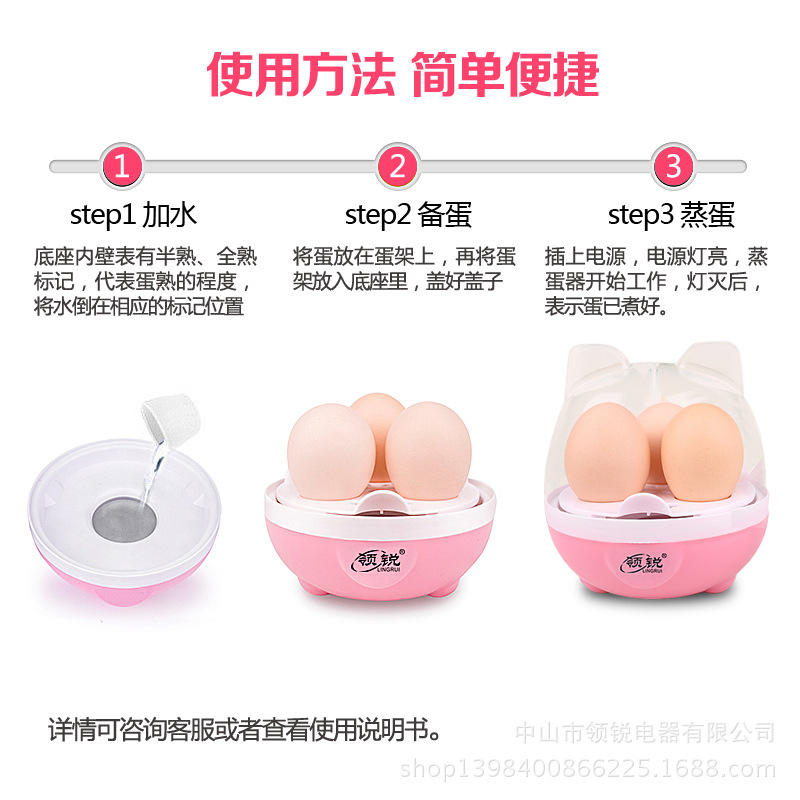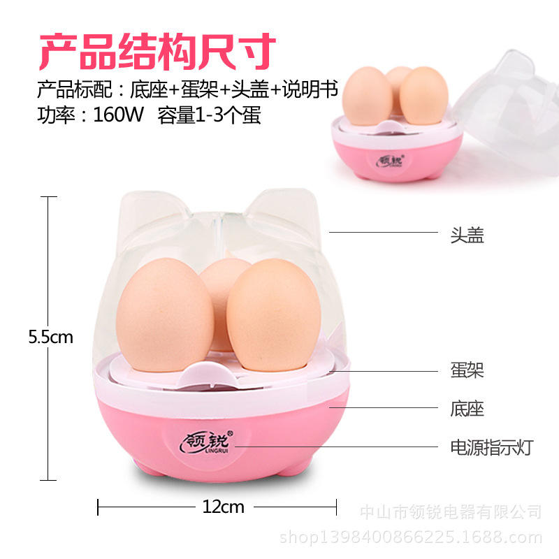 Lingrui Mini Egg Steamer 1-3 Eggs Automatic Cooker Pink Plastic Single Layer Home Kitchen Appliance