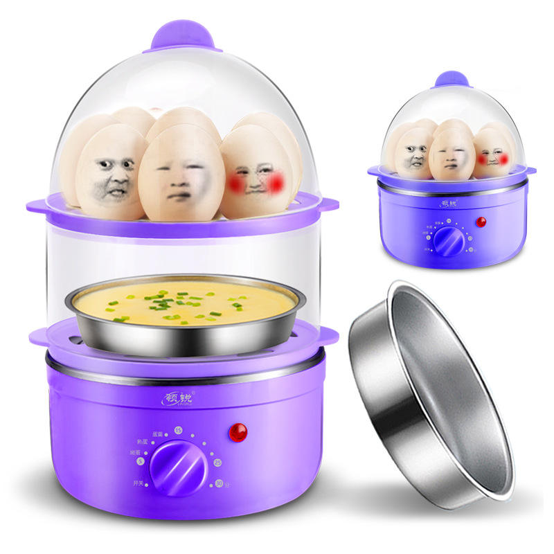 Lingrui Smart Egg Cooker Double Layer 600W Stainless Steel Timer Steamer Mini Household Breakfast Machine