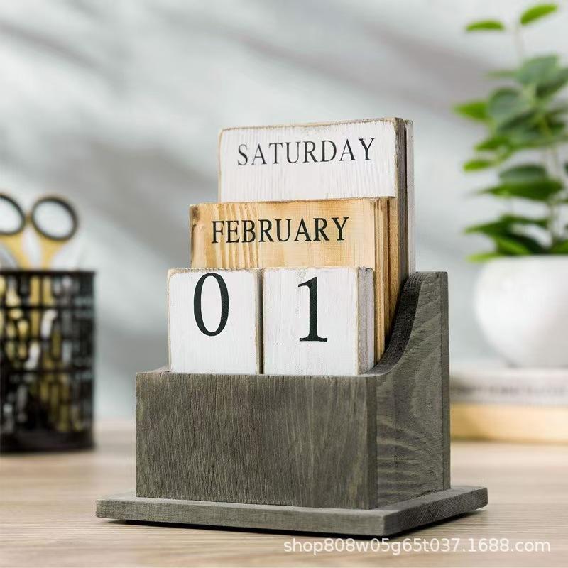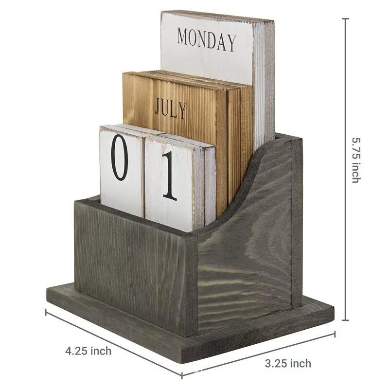 Lingyue Wooden Table Calendar 4.25x3.25x5.75 Inch Desktop Decorative Organizer For Home Office Use