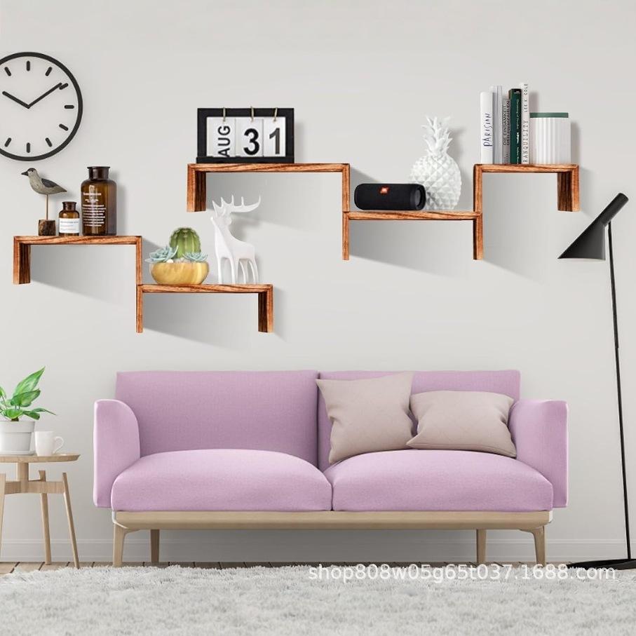 Lingyue25627 Solid Wood Wall Mounted Shelf 5 Tier Rectangle Nordic Style Storage Rack Retro Color Partition Bookshelf