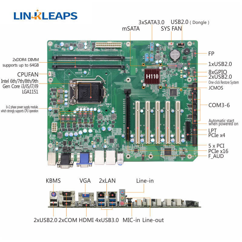 Linkleaps 6th/9th Generation Intel Core CPU Desktop H110 Chipset 2x DDR4 64GB 6x RS485 COM 1x MSATA SSD Industrial New