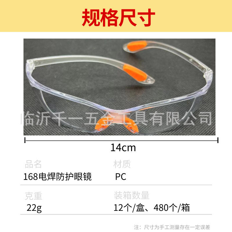 Linyi Qianyi Hardware Tools Co Ltd 168 Electric Welding Protective Glasses Impact Resistant Transparent Frame Orange Nose Bridge