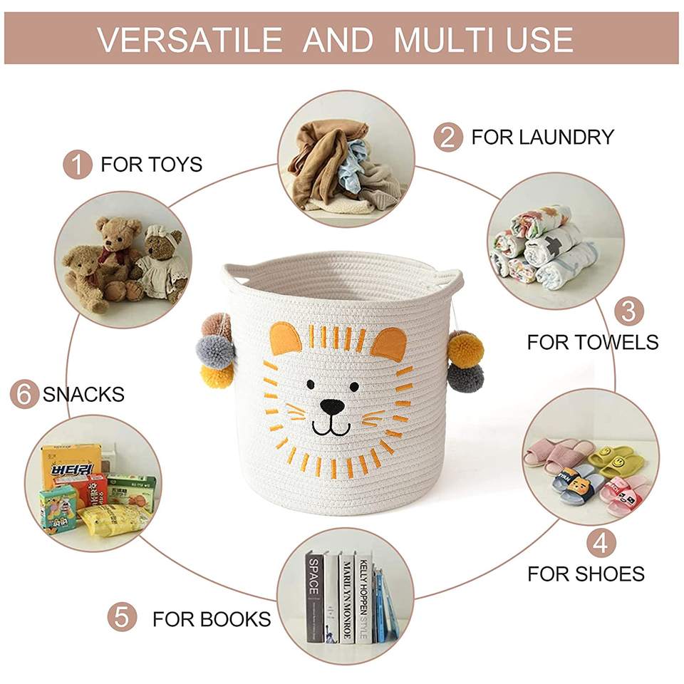 Lion Basket Cotton Rope, Large Blanket Basket Laundry Hamper for Throws, Pillows, Blanket OEM Made in Vietnam