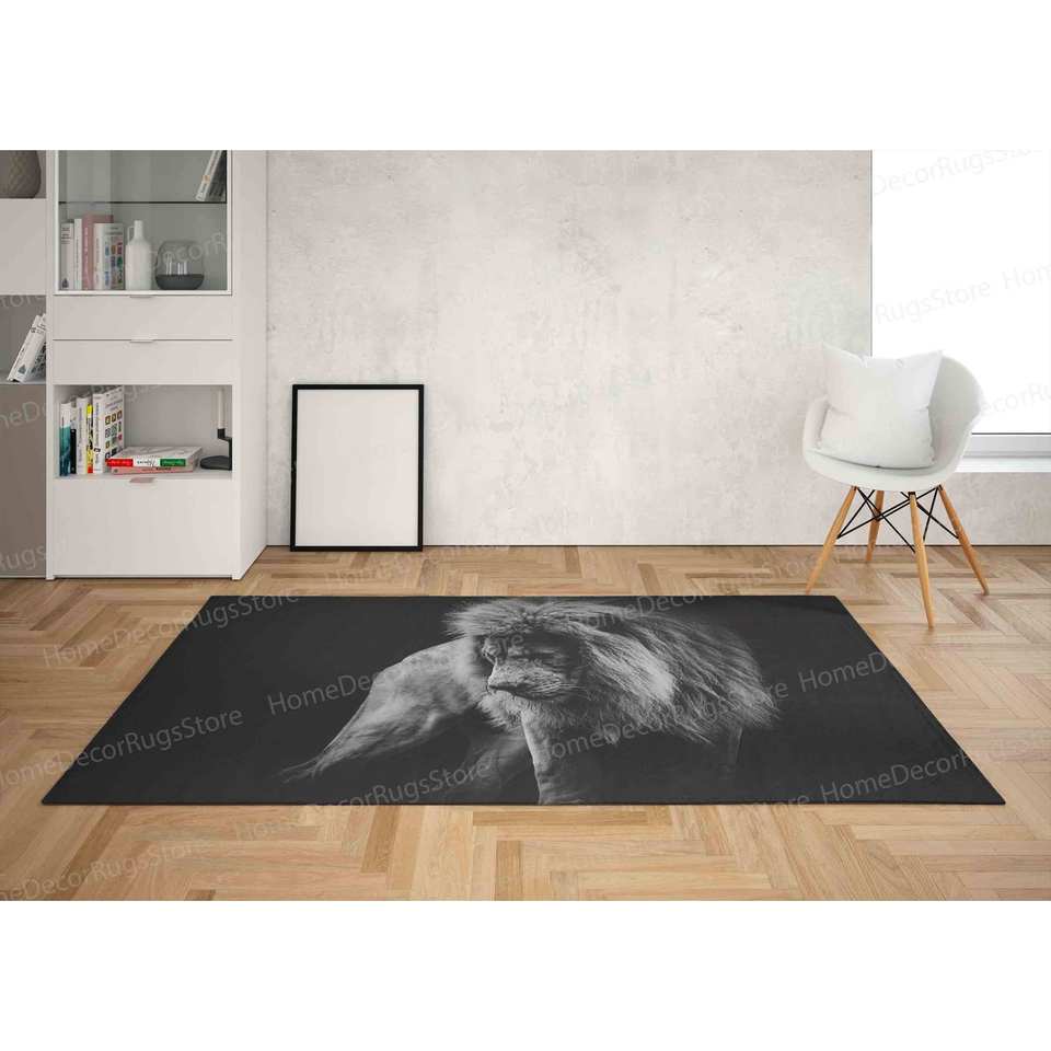 Lion Design Printed Rug - Farmhouse Decor Entryway Rug,Chenille Rug