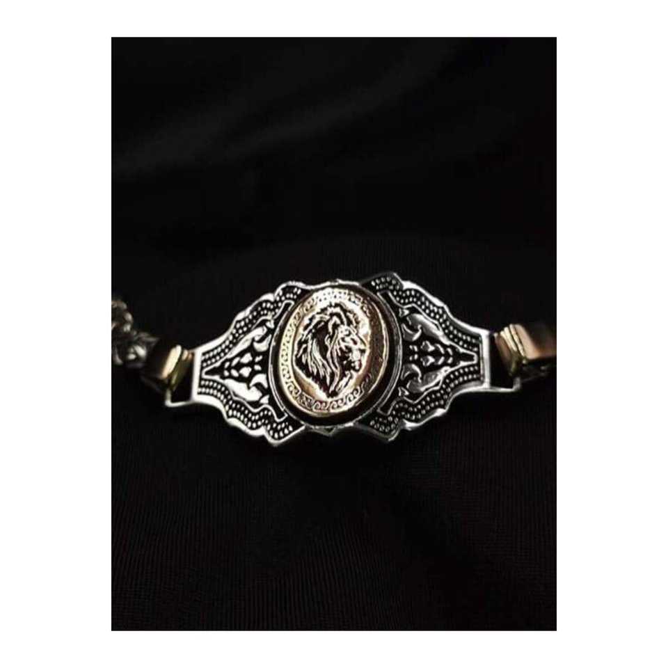 Lion Embroidered Silver King Bracelet 925 Sterling Silver 18.33