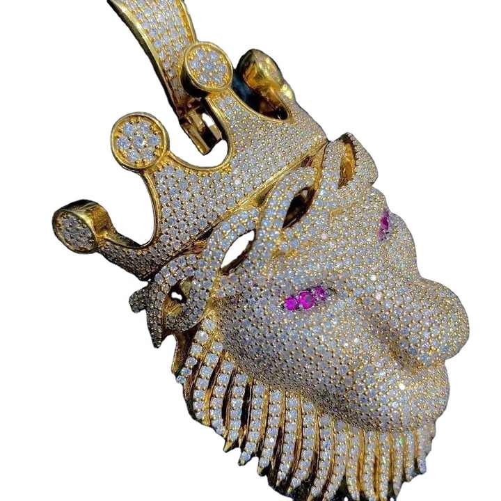 Lion Head Bling Bling Best Selling 14k Solid Gold Custom Jewelry Animal Face Fully Iced Out Charming Moissanite Diamond Pendant
