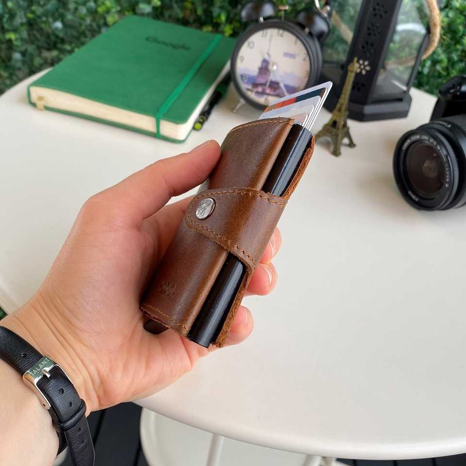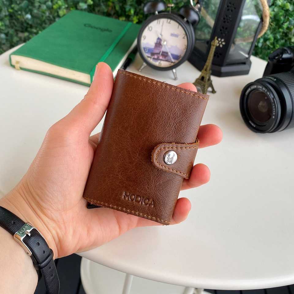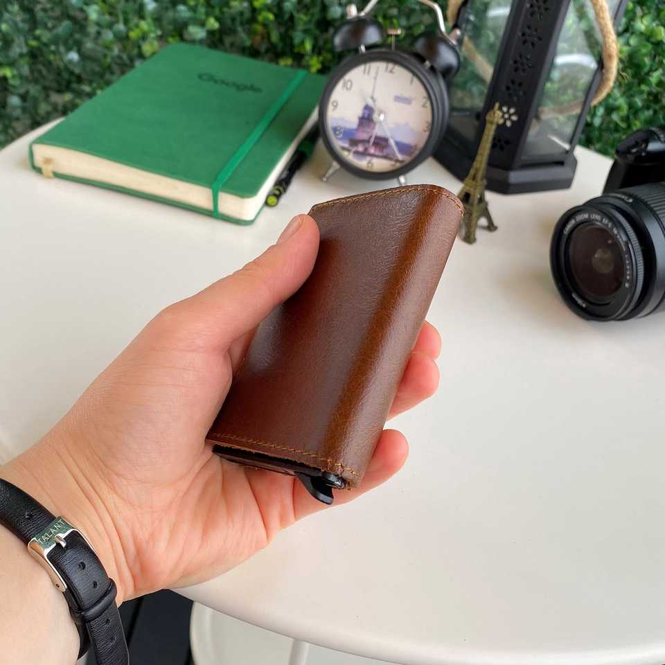 Lisbon - Genuine Leather Mechanism Natural Smart Card Holder Wallet