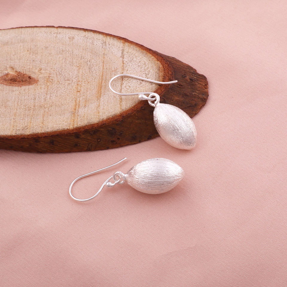 Lite weight plain jewelry brushed finish silver plated cardamom seed earring brass metal plain charms pair drop dangle earrings