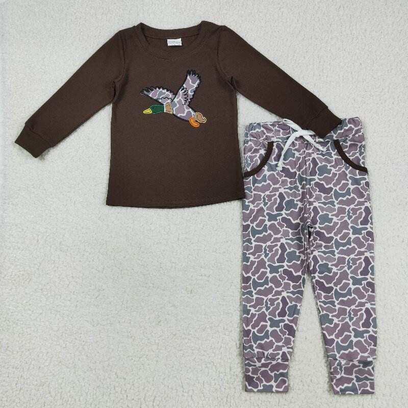 Little Boy Boutique Brown camo truck puppy embroidery fall camo outfits wholesale toddler boy long sleeve child pajamas set