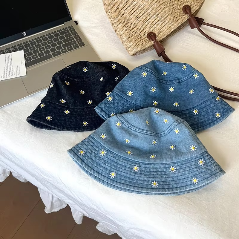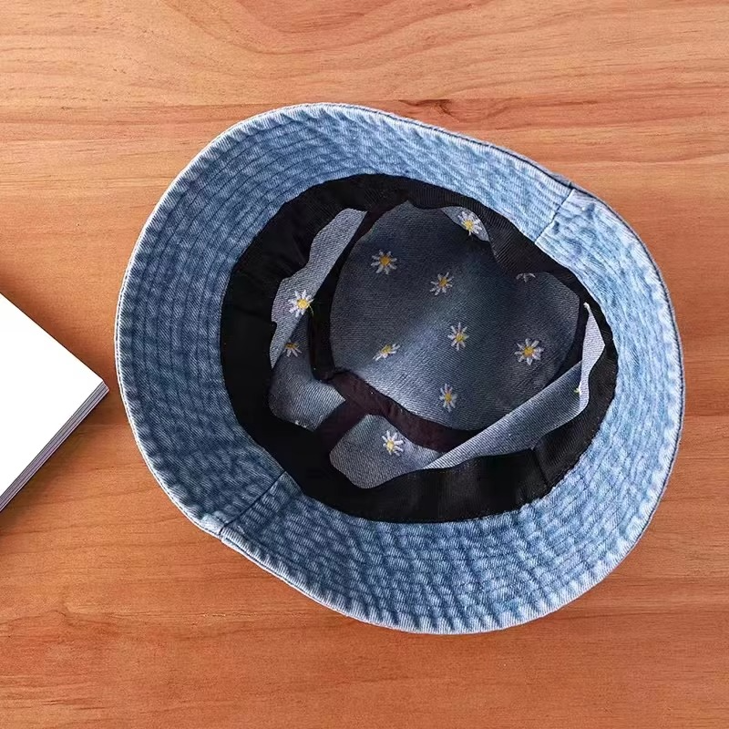 Little Daisy Flower Fisherman's Hat Women Foldable Denim Bucket Hat Summer Sun Protection Hat Blue Jeans Panama Hat Female