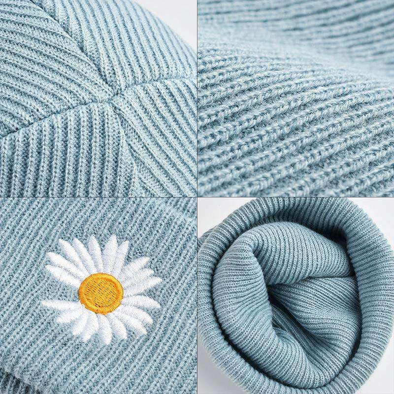 Little Daisy Woolen Cap Korean Warm Ear Protection Needle Female Fall Winter Men Travel Beanie Hat Tide
