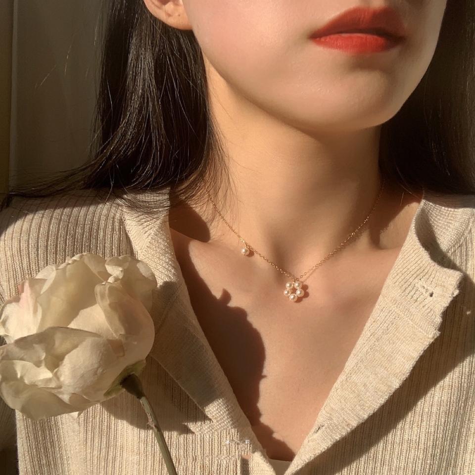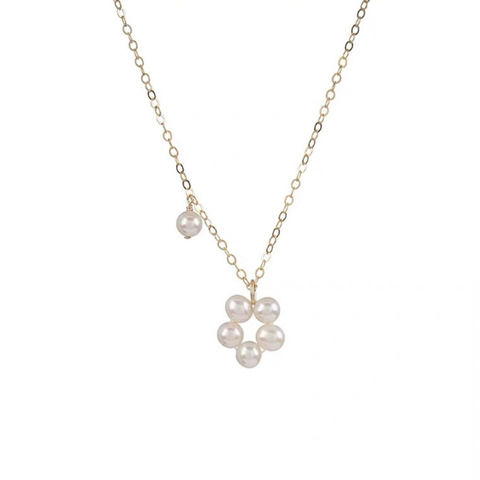 Little Flower Natural Freshwater Pearl Necklace 14K Gold Wrapped Clavicle Simple Elegant Internet Red Fashion