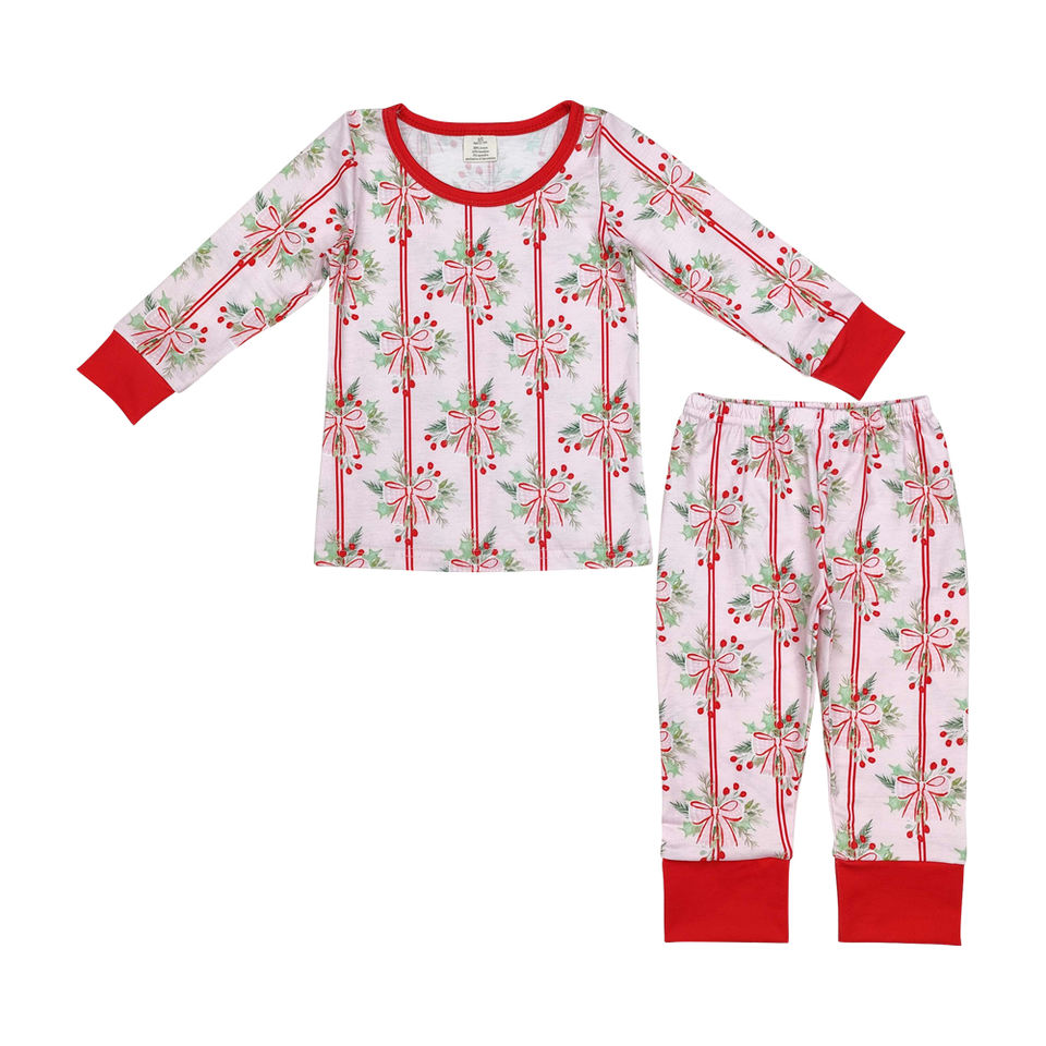 Little Girl Boutique Casual Clothing Set Christmas Trees bows Print Long Sleeve Pajamas Outfits for Kids Toddler Wholesale Child