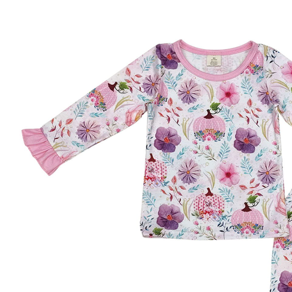 Little Girl Boutique Casual Clothing Set Pumpkin flowers Print Long Sleeve Pajamas Outfits for Kids Toddler Wholesale Child