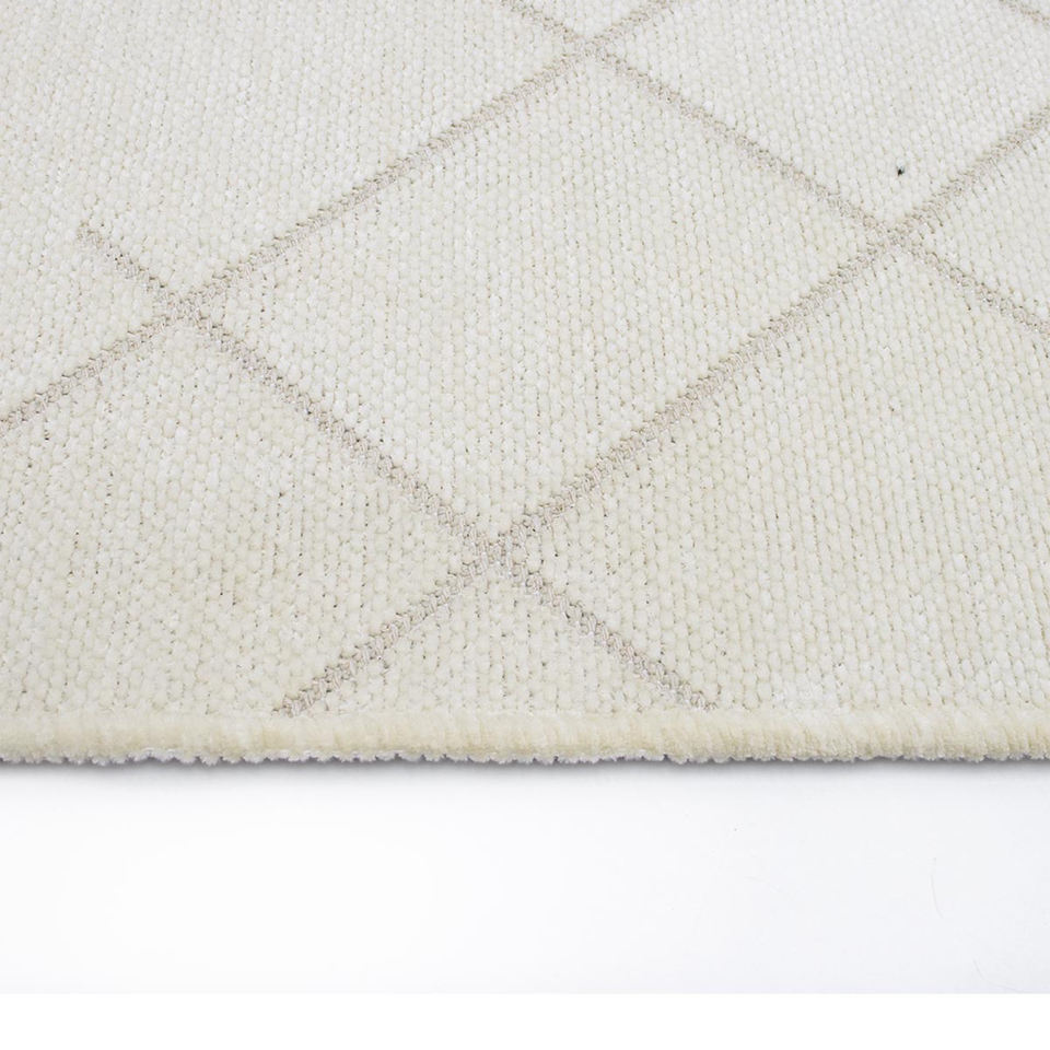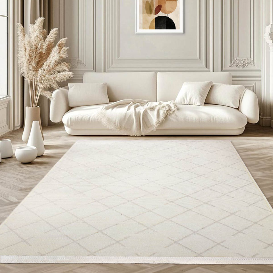 Liva Cream Grid Geometric Chenille Rug Wholesale 7mm Washable Non Slip Polyester Cotton Modern Living Room Home Floor