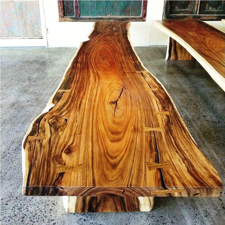 Live Edge Sua Wood Solid Wood Dining Table Natural Tropical Style Dining Room Furniture