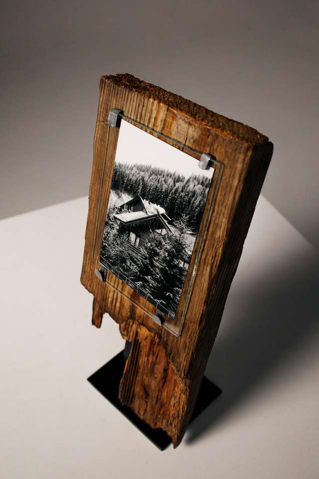 Live Edge Wood Photo Frame Rustic Handmade Tabletop Picture Holder With Heavy Metal Stand Natural Timber Art Decor Accent
