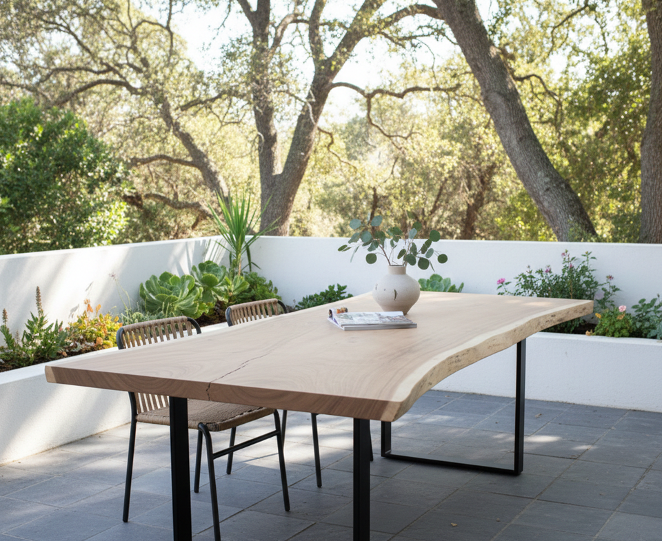 Live edge suar wood slab crafted from solid monkey pod wood with bold grain rich tones and natural edges for custom furniture