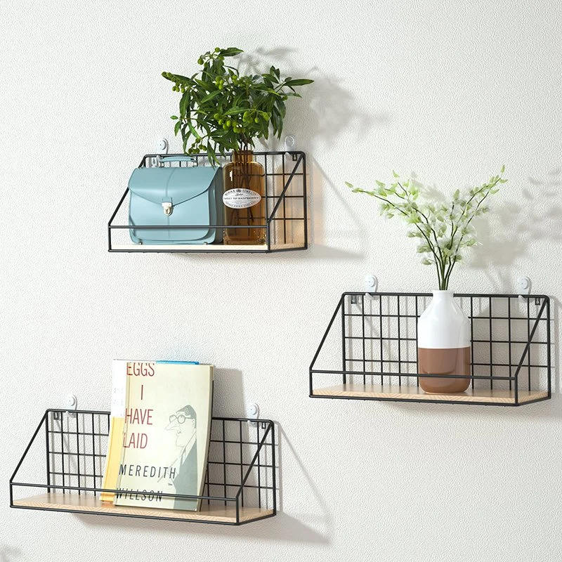 Living Room Decor Wall Mounted Storage Rack With Basket Black Color Wholesale Prices Handmade Wall Mounted Rack