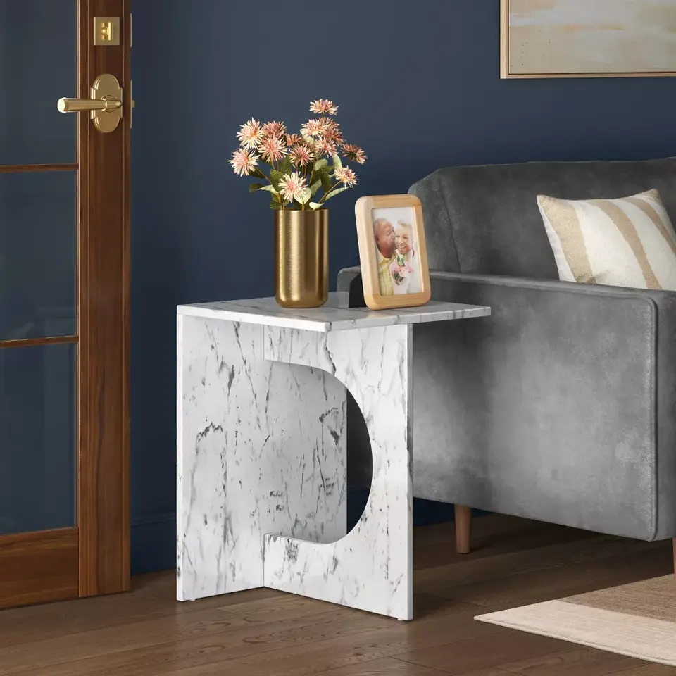 Living Room Home Furniture Modern Luxury C Shape Mesa De Centro Nordic White Metal Base Beige White Square Marble Coffee Table
