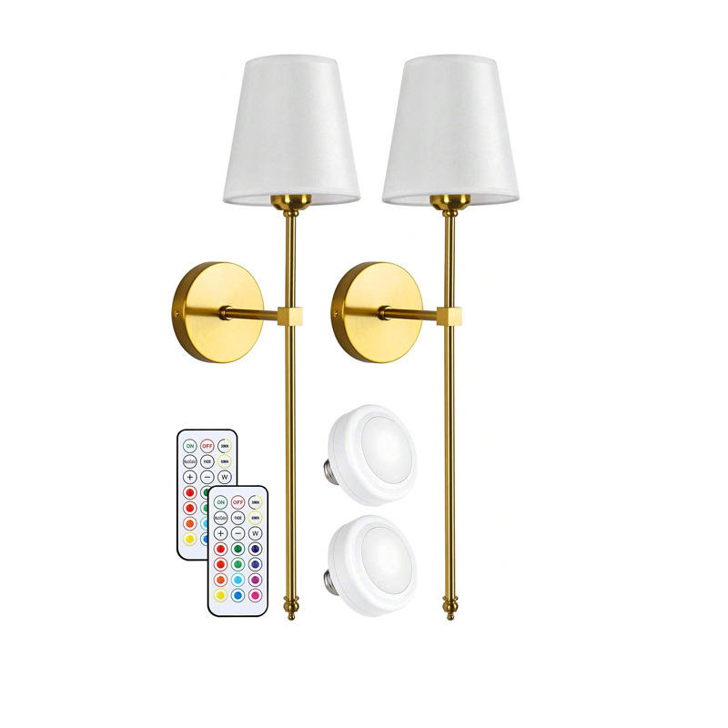 Living Room Indoor Gold RGB Dimmable Wireless Battery Operated Wall Sconce with Remote Control Set of 2 Rechargeable Wall Lights