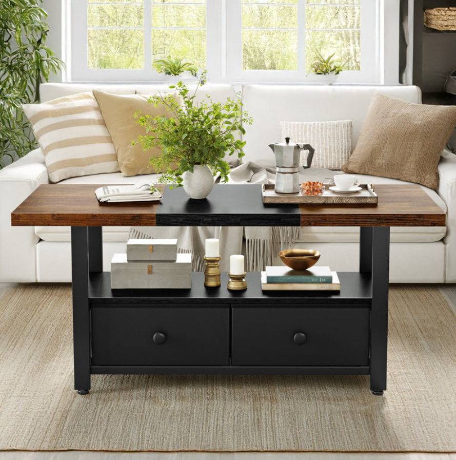 Factory Custom Living Room Luxury Wooden Dining Center Tables with Storage Shelf Classic Console Table with 2 Fabric Drawers