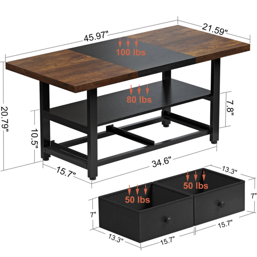 Size:20.79'' H X 21.59'' L X 45.9'' W