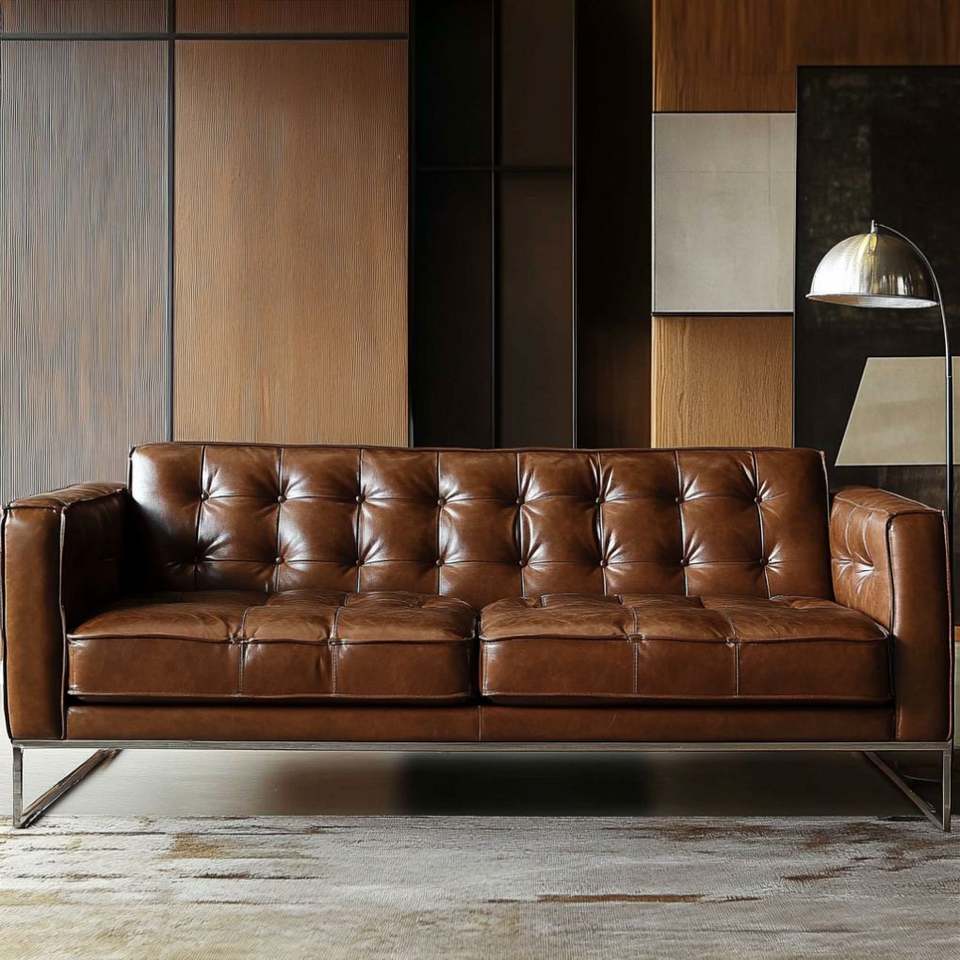 Luxury Corner Sofa Faux Leather Cover Solid Wood Frame Modern Design Adjustable Comfortable Three Seat 5-Year Warranty for Villa