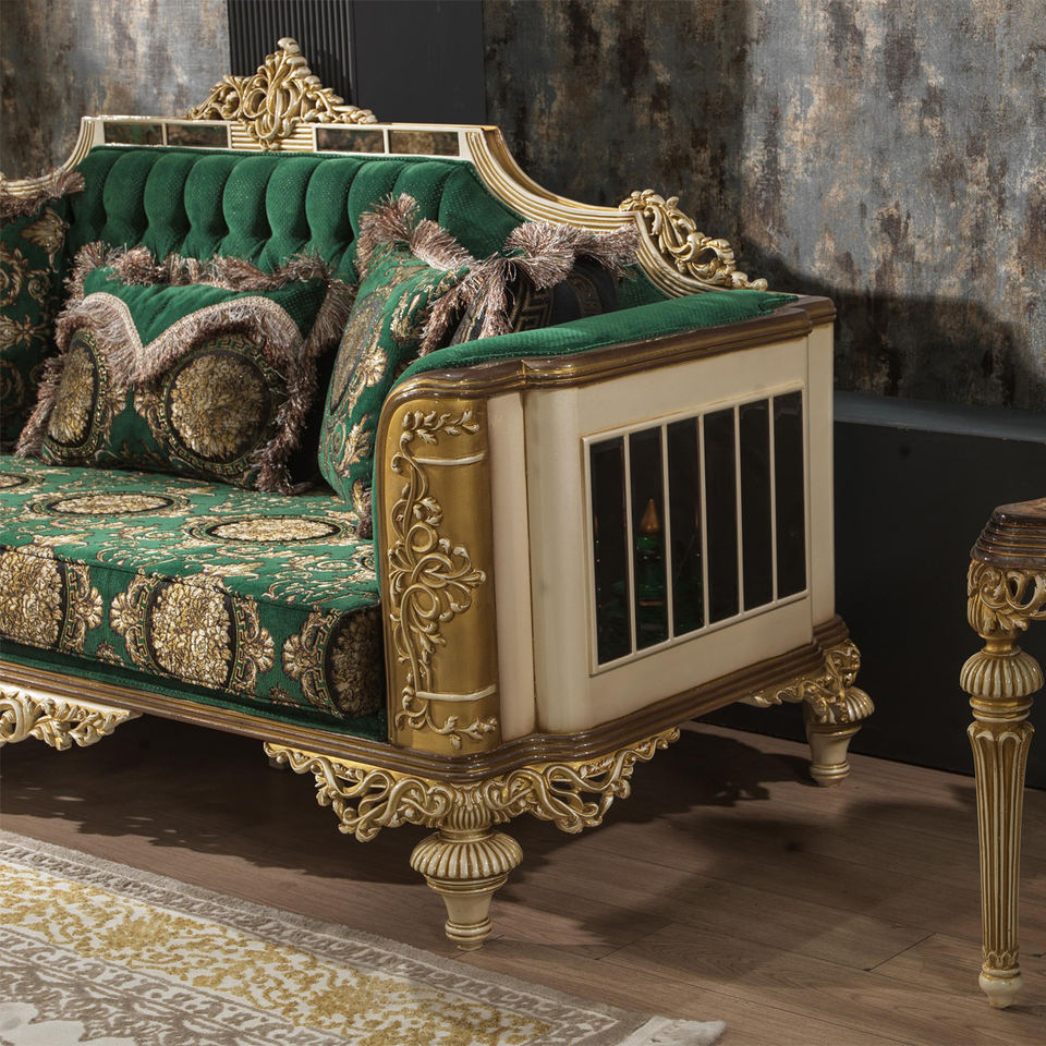 Living Room Sofa Vintage Style Leather Sofa Set Furniture Classic Sofa Furniture Solid Wood Carved Luxury Classic