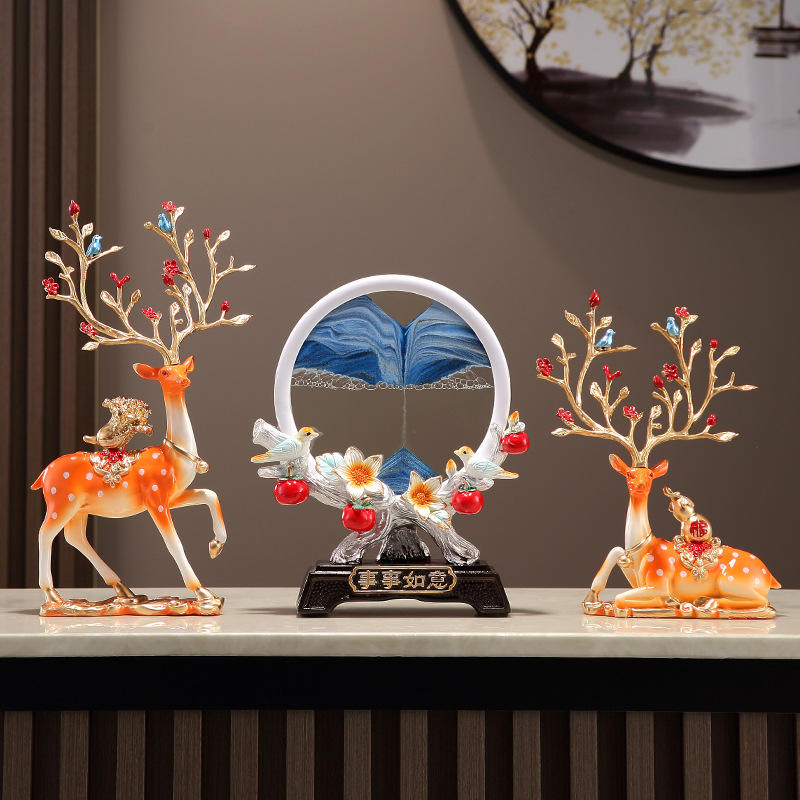 Living Room TV Cabinet Wine Cabinet Quicksand Painting Hourglass Deer Sculpture Figurine Epoxy Resin New Home Decor & Gifts