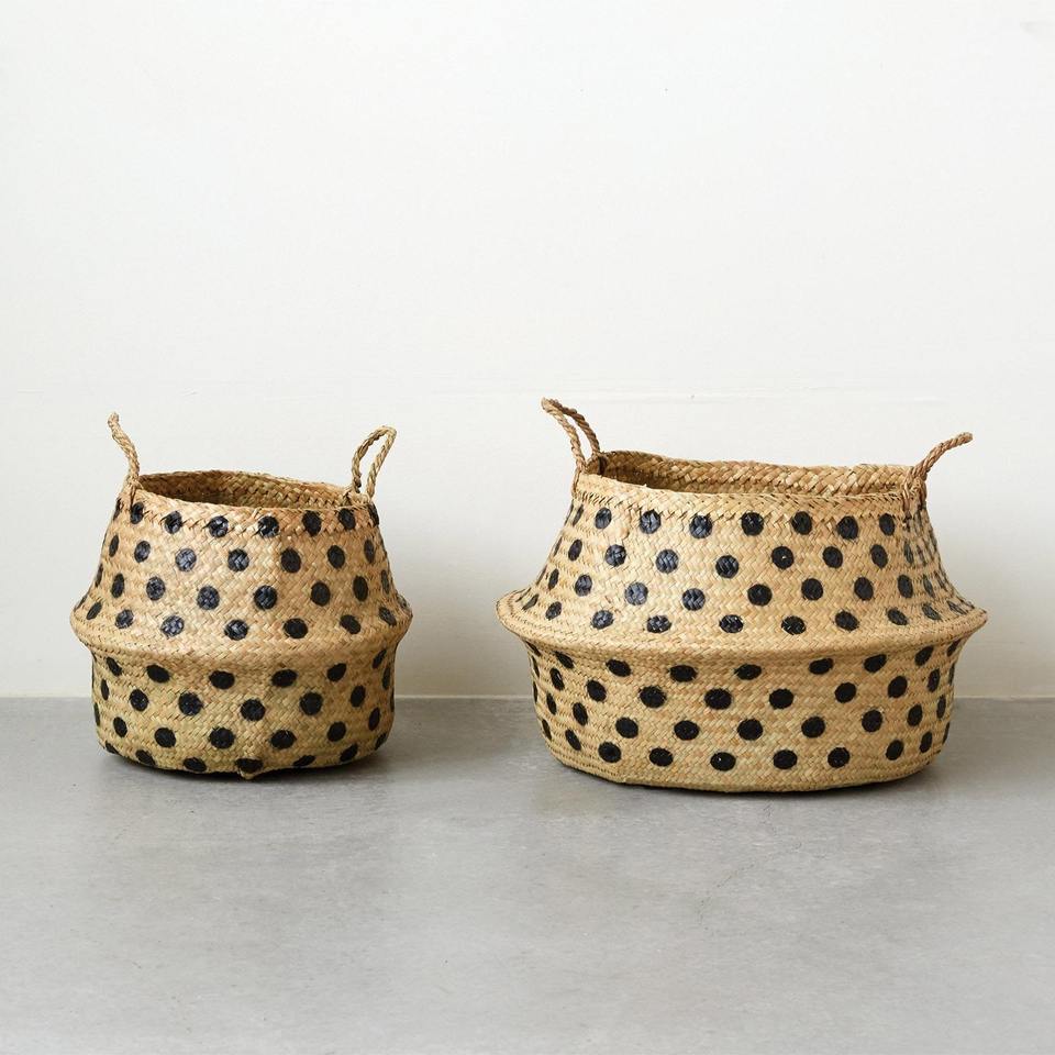 Living essential handbraided seagrass straw basket clothes organizer sea grass belly baskets