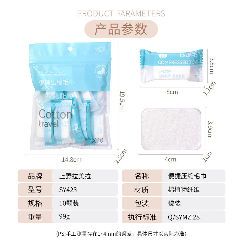 Lmltop Compressed Facial Towels 25x50cm Cotton Soft Travel Portable Disposable Towels Single Layer Solid Color Rectangle