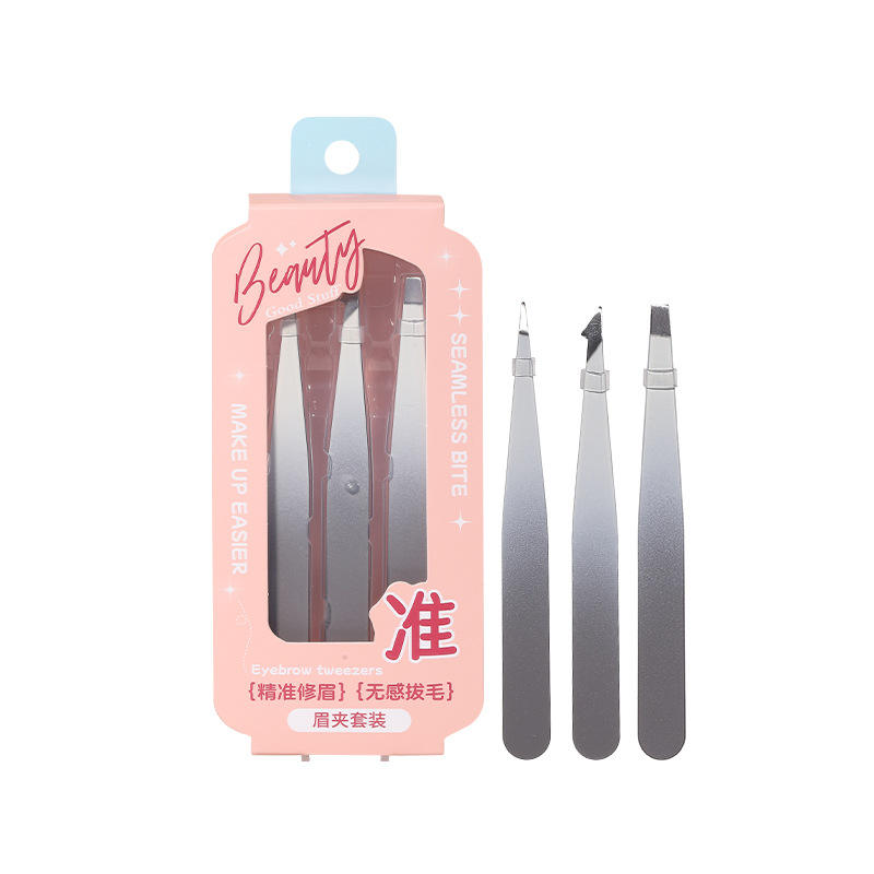 Lmltop Eyebrow Tweezers Set 3Pcs Stainless Steel Slanted Tip Precision Hair Removal Makeup Tool