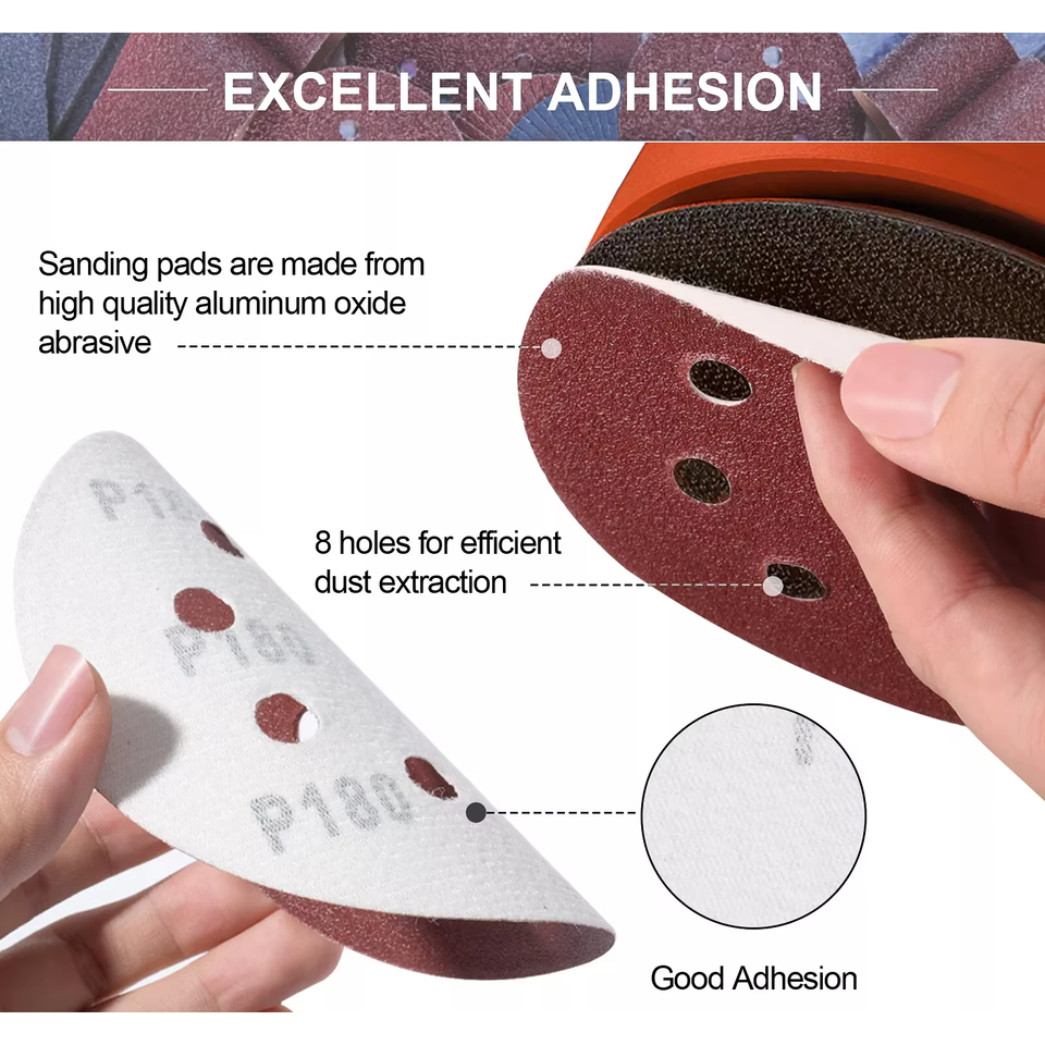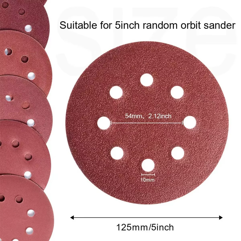 Local Stock in US-50pcs 5inch Resin Bond Aluminum Oxide Sanding Discs 220Grit Abrasive Disc for 8-Hole Orbital Sander Paper