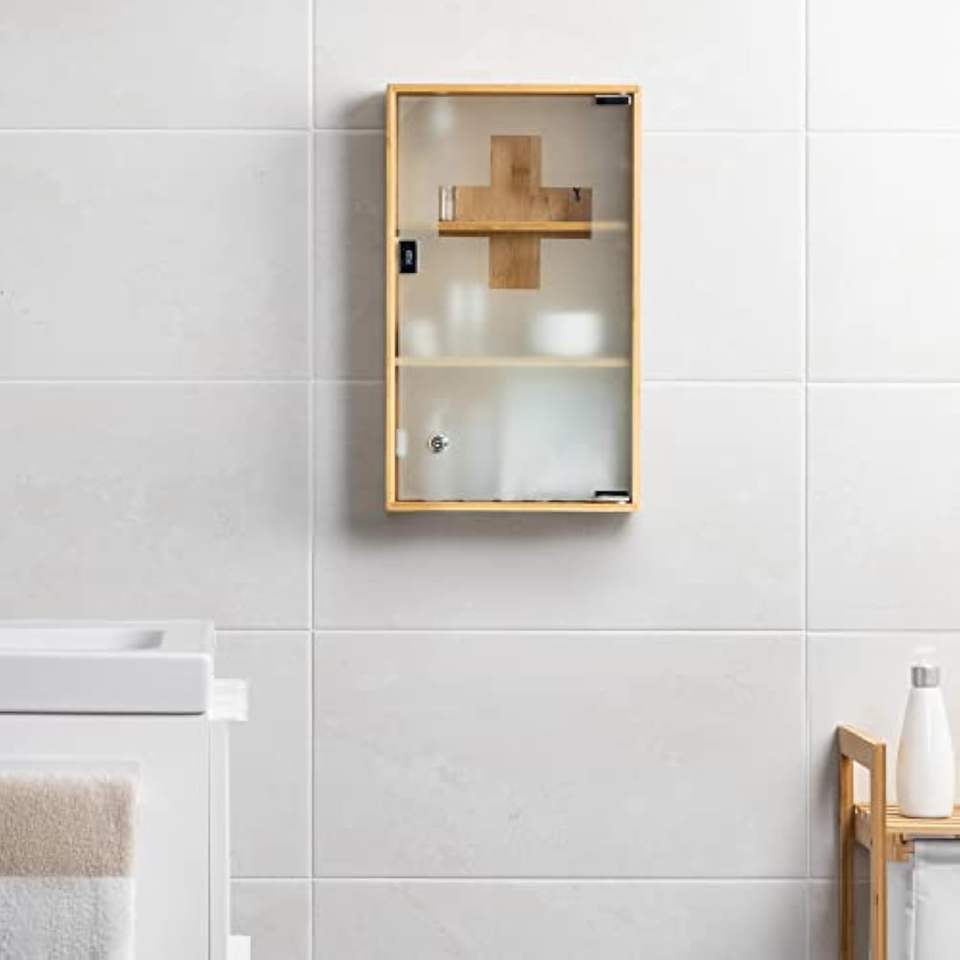 Product name:Lockable Bamboo Medicine Cabinet Wall Mounted First Aid Box