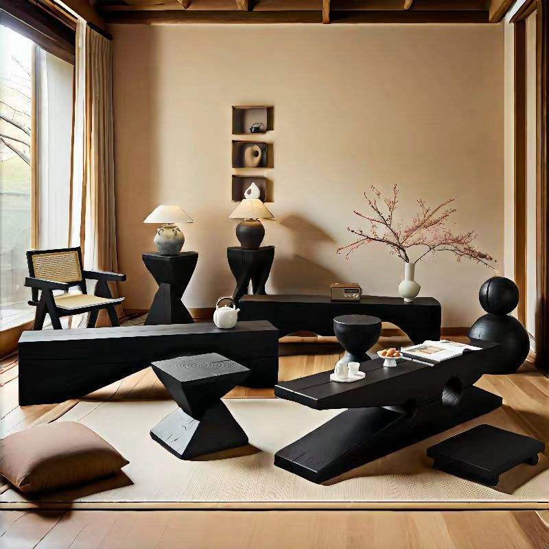 Log tree stump side table living room small apartment wooden block carbonized art pure solid wood bedside storage corner table