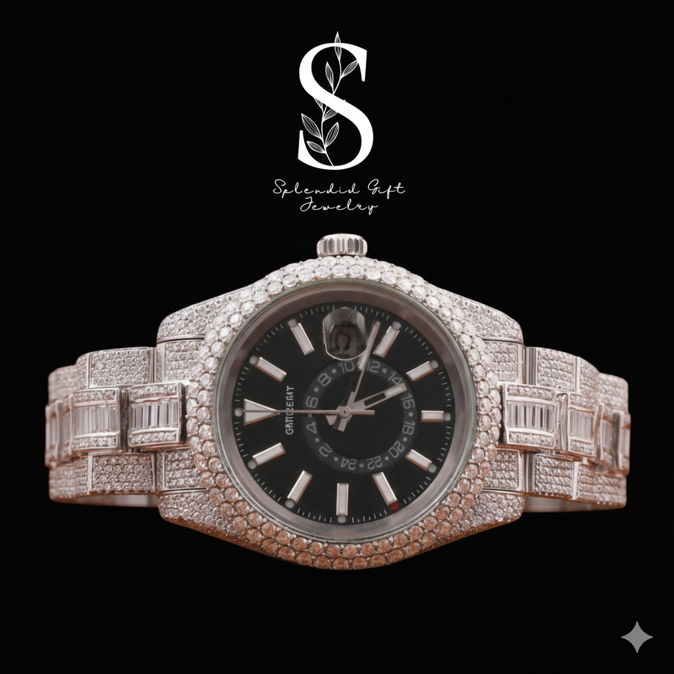Logo Stainless Steel Case Quartz Hip Hop Watch Men's 41 mm Sport Watch Iced Dial Big Moissanite Diamonds For Mens