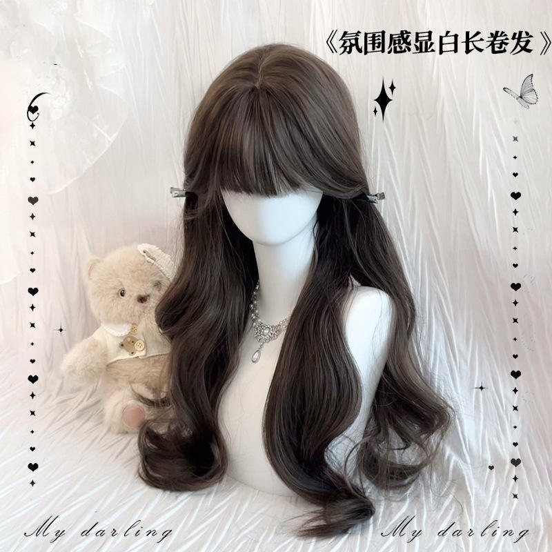 Lolita Long Curly Wig With Side Swept Bangs Natural Hairline 130 Density Kanekalon Fiber Full Head Wig For Women