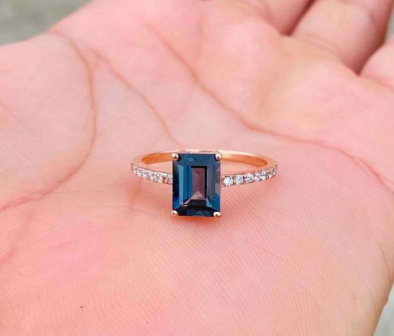 London Blue Topaz Engagement Ring 2ct Emerald Cut Vintage Unique Gold Engagement Wedding Bridal Anniversary Ring