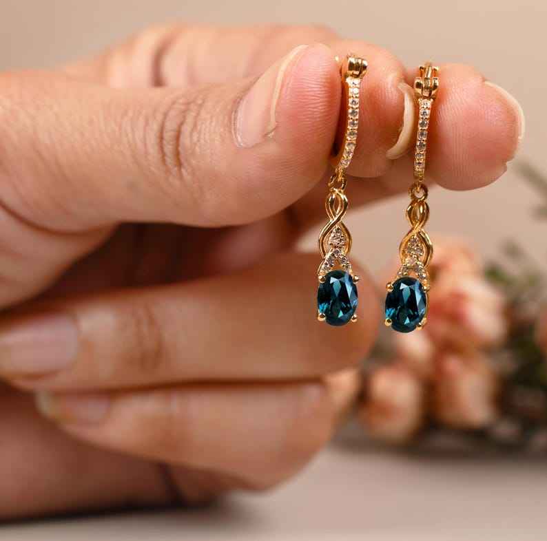 Keyword:Blue Topaz Stud Earrings With Sparkling Dangle Gemstone Jewelry