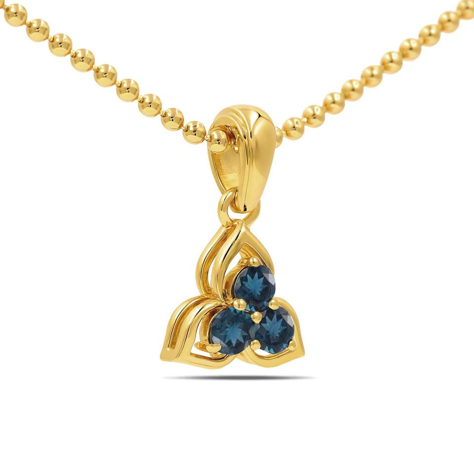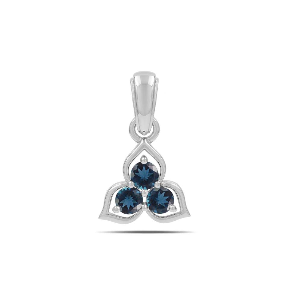 London Blue Topaz Round Pendant 925 Silver Prong Setting Trillium Flower Design Handmade Fine Jewelry by Ishime Jewels